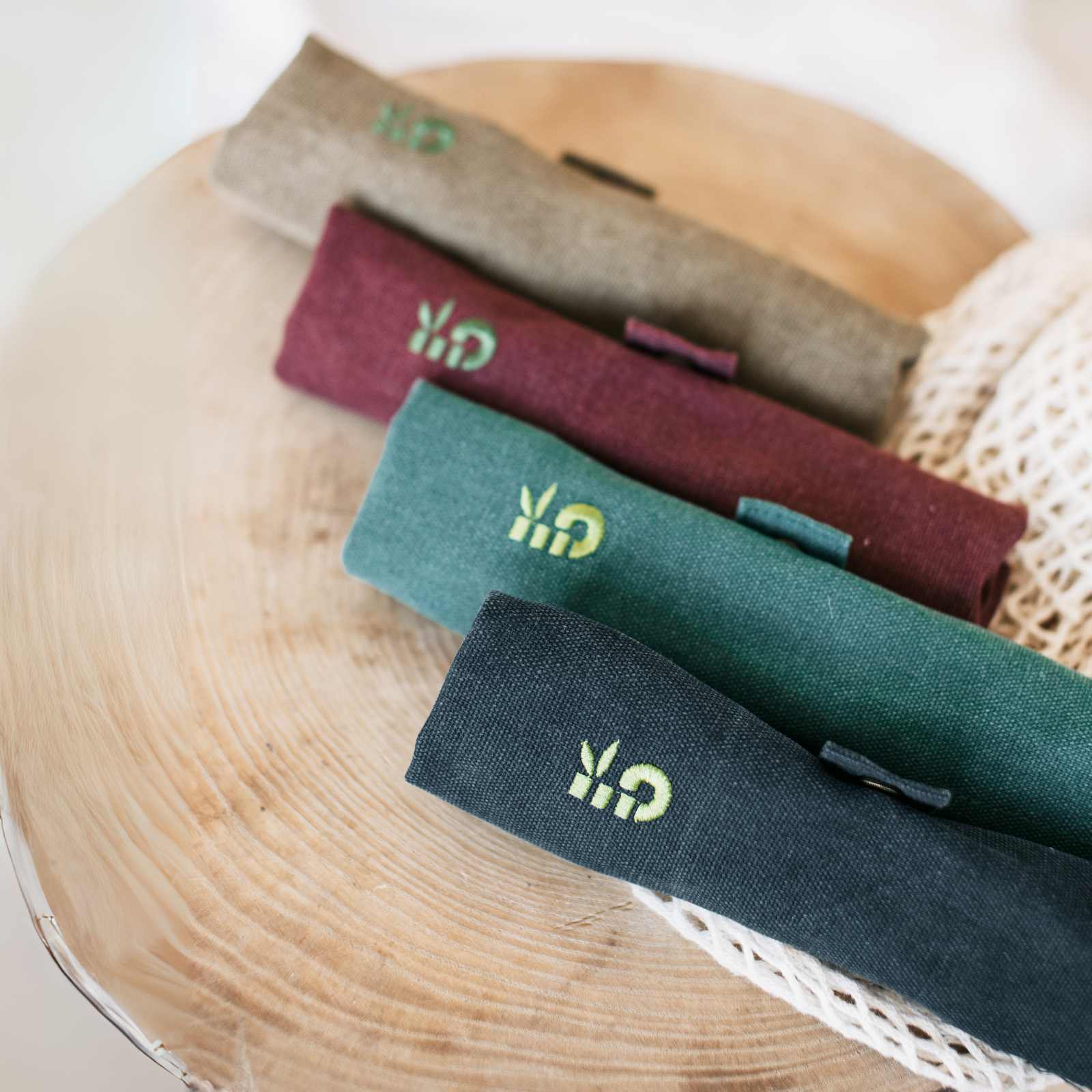Gepersonaliseerde Bamboe Bestekset in een draagtasje – een hoogwaardig branded on-the-go geschenk dat in het oog springt.